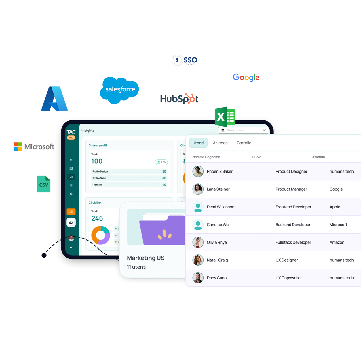 Within the App, simply by photographing the paper business card through theApp Artificial Intelligence. The app recognizes all the information and creates a digital profile in TAC. The profile can then be exported to the personal address book. All profiles acquired by employees can be shared with a single click to the company.