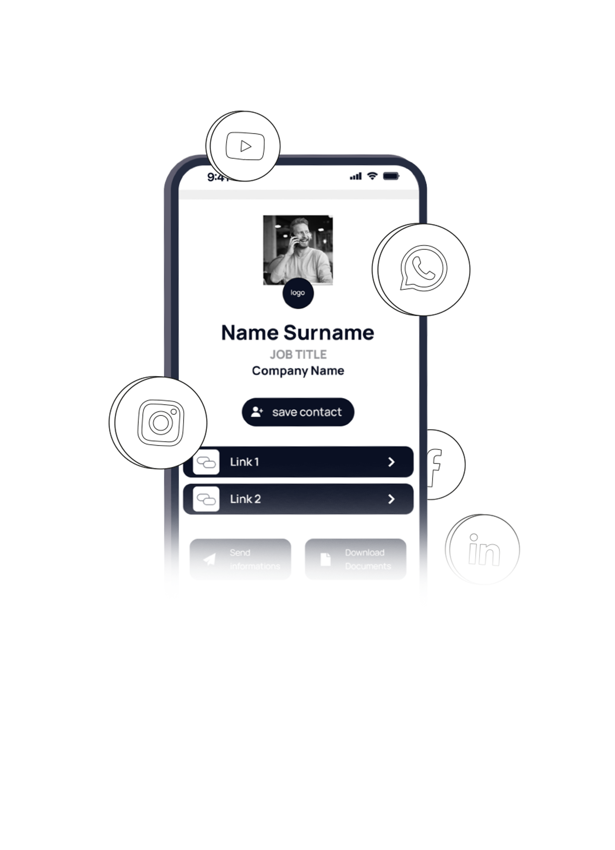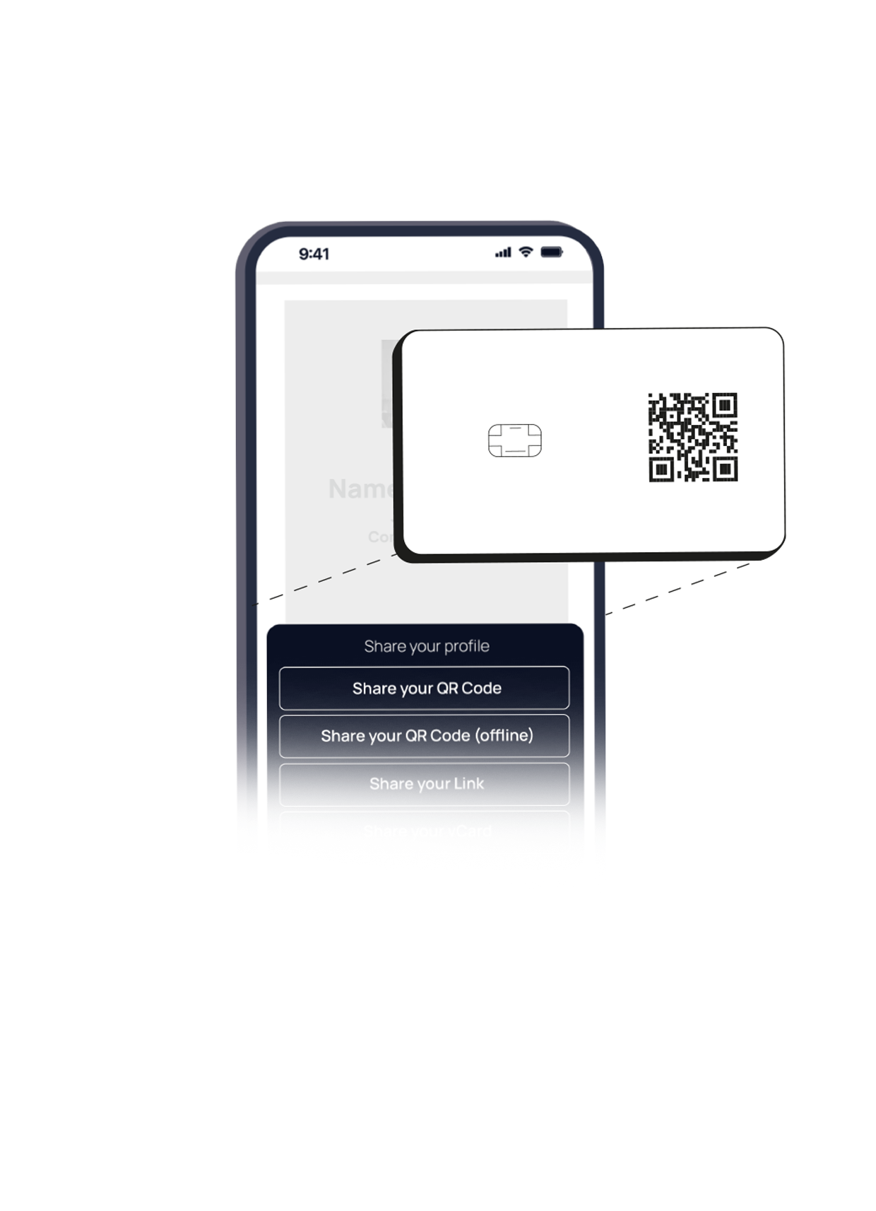 Contactless transmission of the contact via NFC. Simply bring the card close to the smartphone to share the contact in the address book